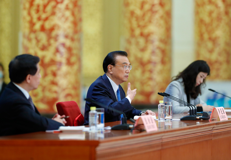 3月11日下午,十三届全国人大四次会议在北京人民大会堂举行记者会,国务院总理李克强应大会发言人张业遂的邀请出席记者会,并回答中外记者提问。新华社记者 翟健岚 摄