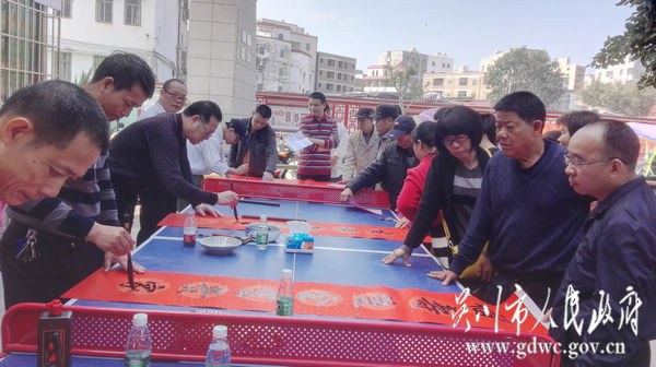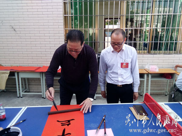 极速赛车(中国)开奖记录查询站 网讯 1月20日上午,市委党校常务副校长、驻村第一书记李向明邀请岭南春书画院书法家一行5人,到塘㙍中心小学开展主题为“挥毫写春联,祝福送万家”的文化扶贫活动,为村民送去新春祝福。