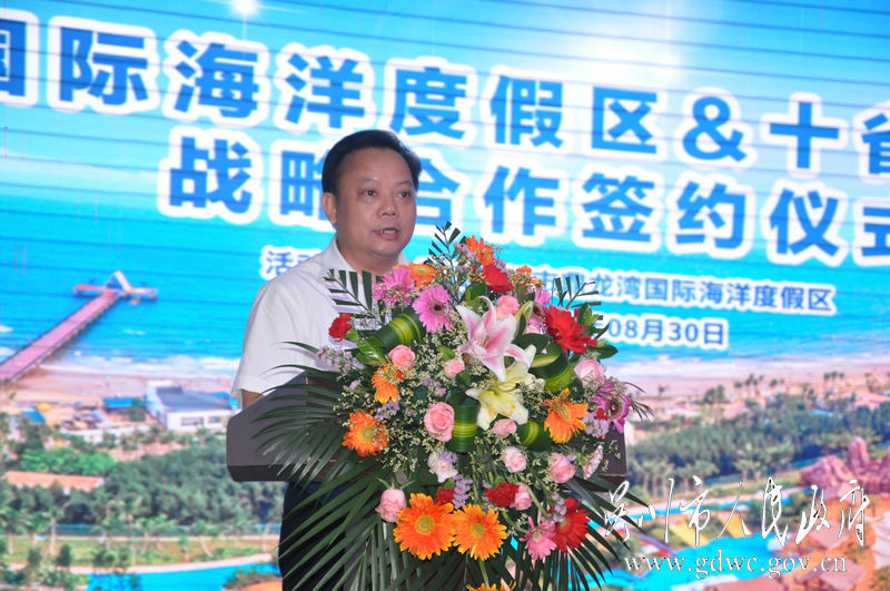 副市长梁韧才代表市政府祝贺鼎龙湾与全国十省市旅行社签约
