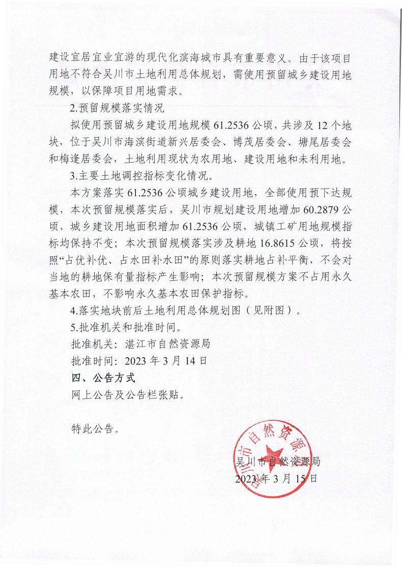 关于《广东省极速赛车 预留城乡建设用地规模使用审批表(极速赛车 滨海新区海岸综合整治PPP项目)》的批后公告