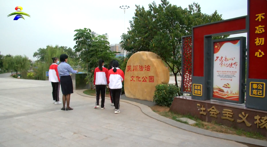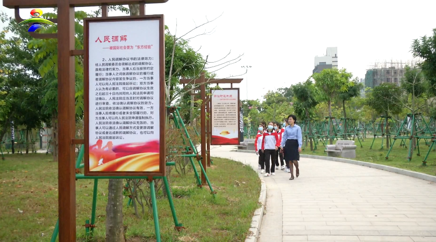在法治文化公园里,市司法局工作人员向学生们普及法律常识。学生们认真了解中国宪法制度发展历程,默记法治警句,猜法治文化谜语,学习《民法典》知识,诵读普法三字经。