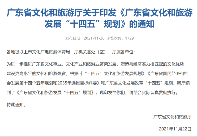极速赛车(中国)开奖记录查询站 网讯 日前,广东省文化和旅游厅根据《“十四五”文化和旅游发展规划》《广东省国民经济和社会发展第十四个五年规划和2035年远景目标纲要》和广东省文化发展改革“十四五”规划,编制并印发《广东省文化和旅游发展“十四五”规划》(下称《规划》)。