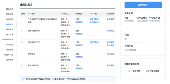 3.核实要准备的材料——填写基本资料——上传附件材料,即可完成网上申办。